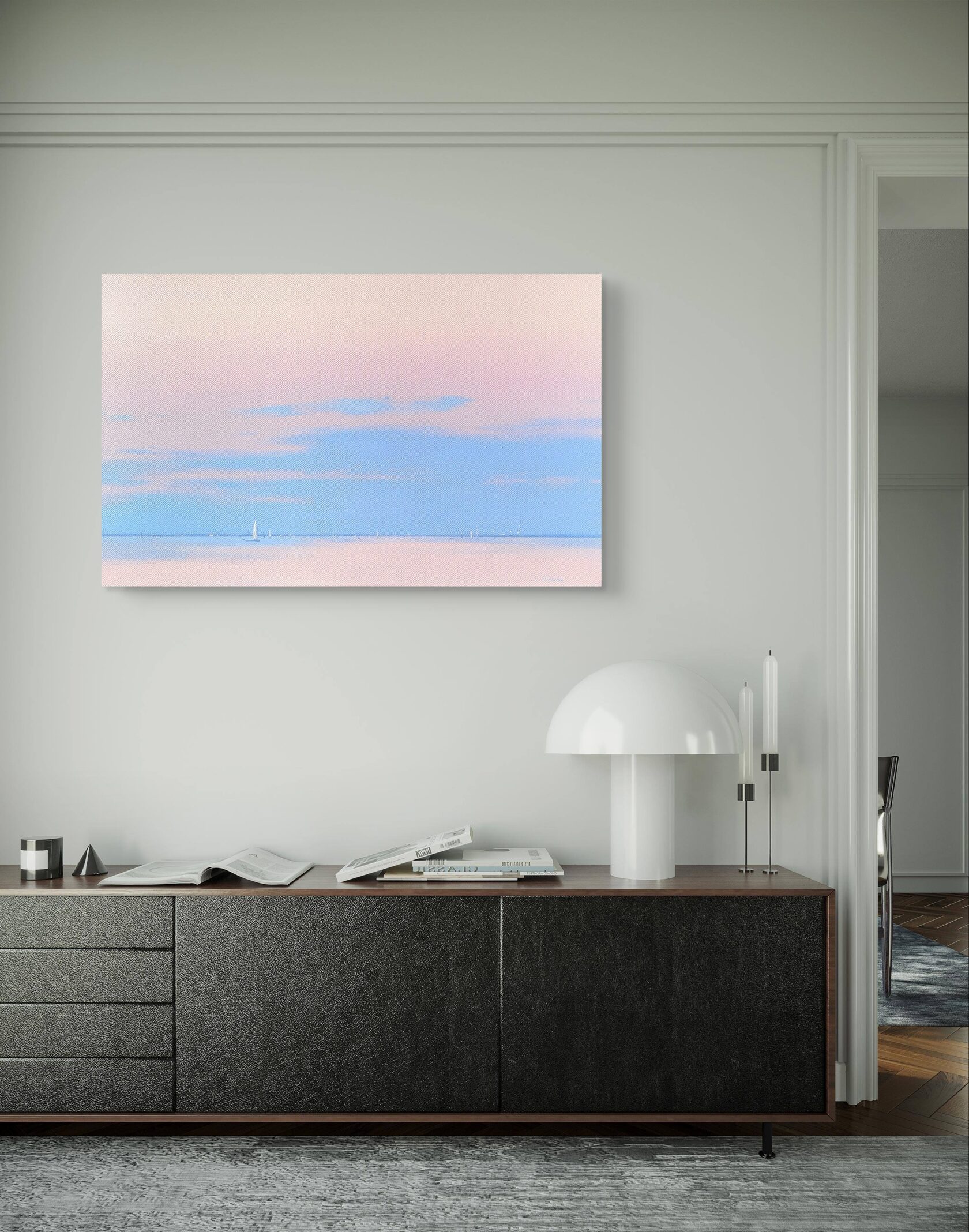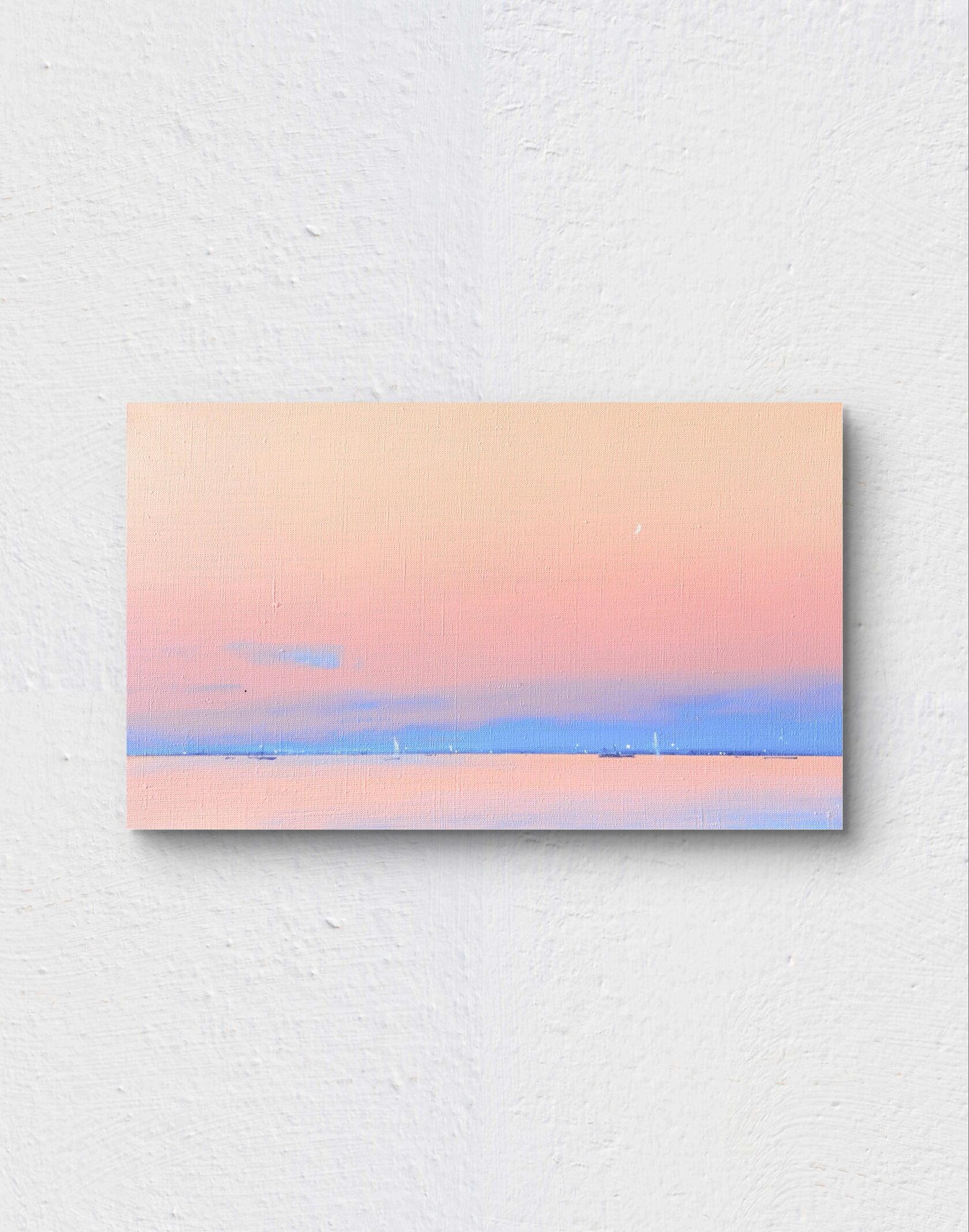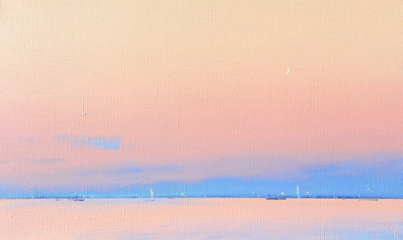 В этой работе отражено чувство покоя и безмятежности, наблюдение за моментом встречи неба и воды на горизонте Финского залива. Нежные переливы голубого и приглушенных оранжевых создают эффект зыбкого сна, а маленькие паруса вдали добавляют ощущение свободы и лёгкого движения. Картина наполнена воздухом, тишиной и прозрачным светом, тем самым состоянием, когда хочется просто смотреть и наслаждаться спокойствием момента.