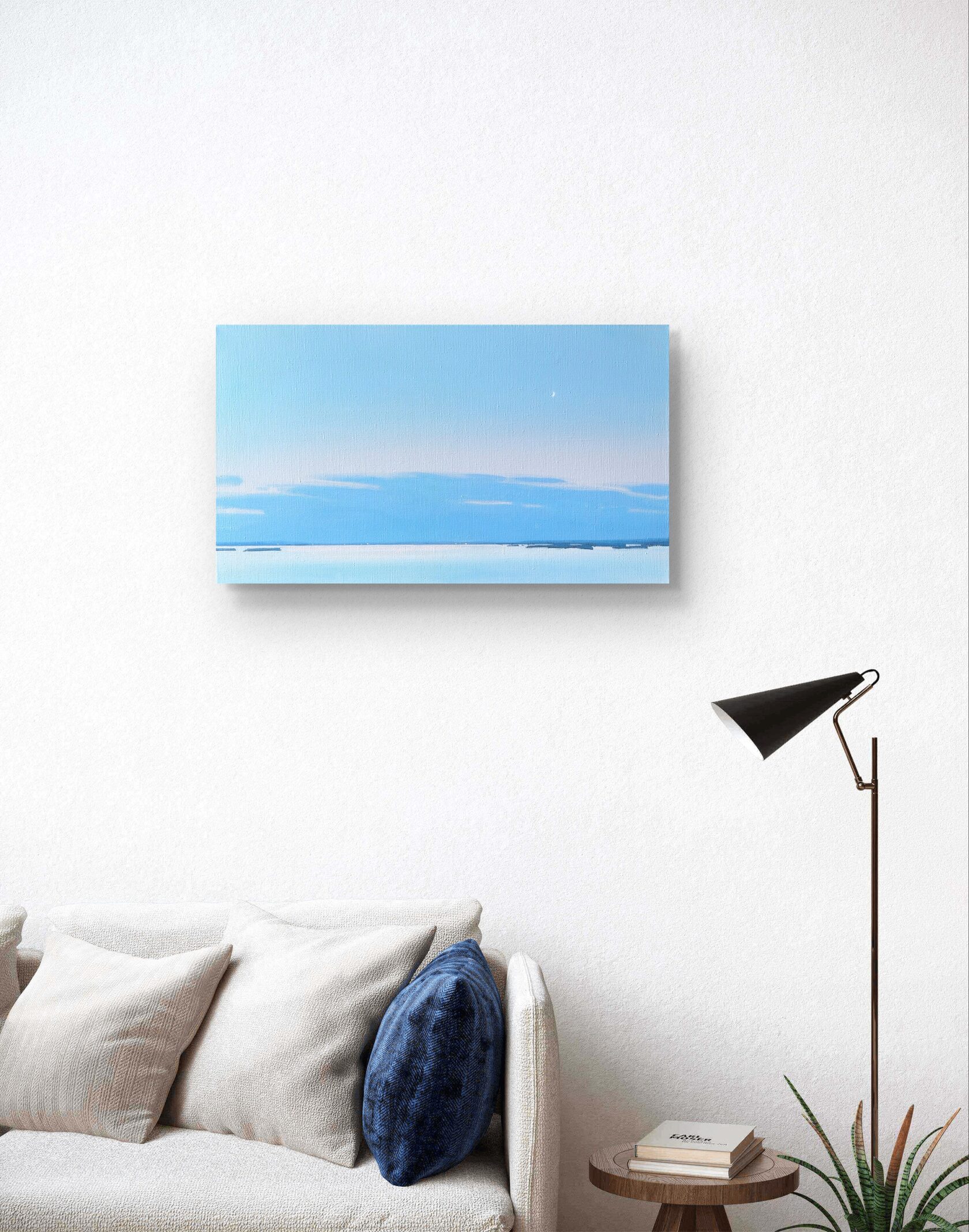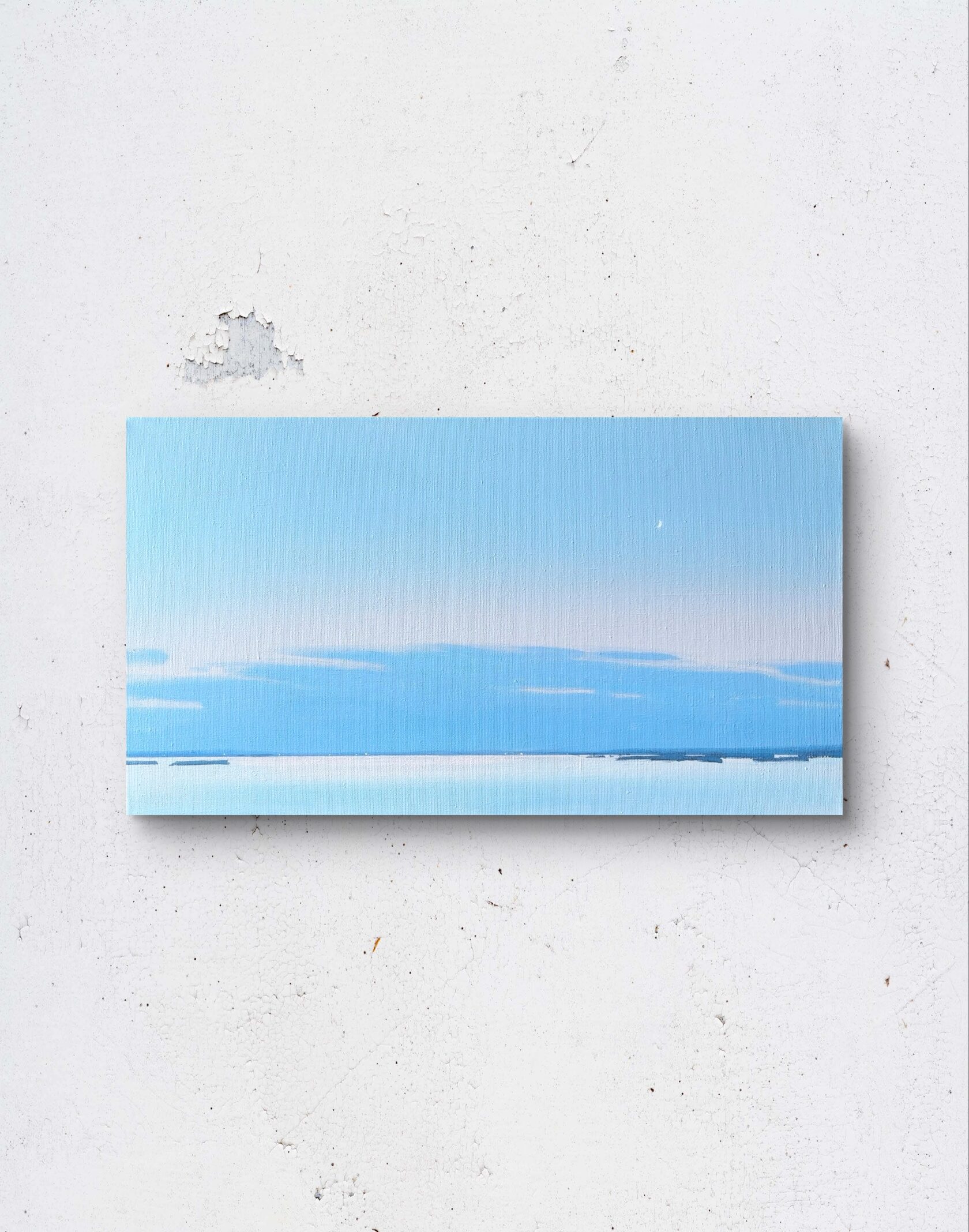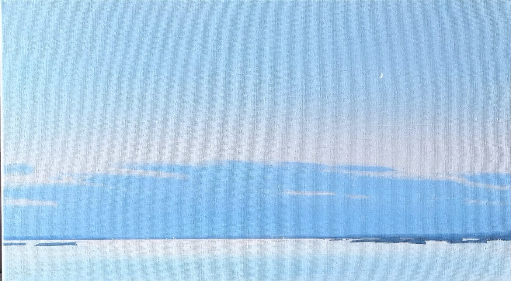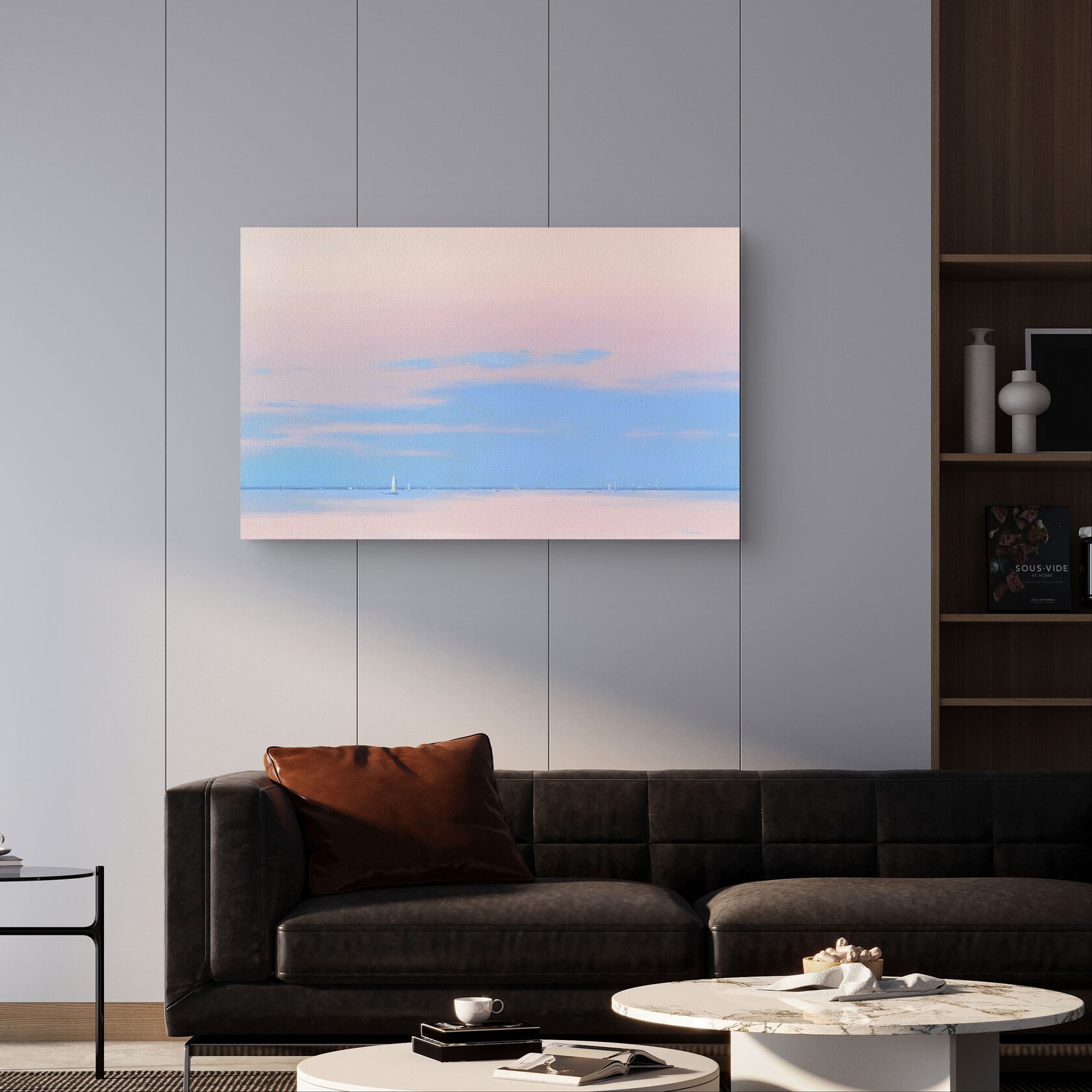 В этой работе отражено чувство покоя и безмятежности, наблюдение за моментом встречи неба и воды на горизонте Финского залива. Нежные переливы голубого и приглушенных оранжевых создают эффект зыбкого сна, а маленькие паруса вдали добавляют ощущение свободы и лёгкого движения. Картина наполнена воздухом, тишиной и прозрачным светом, тем самым состоянием, когда хочется просто смотреть и наслаждаться спокойствием момента.