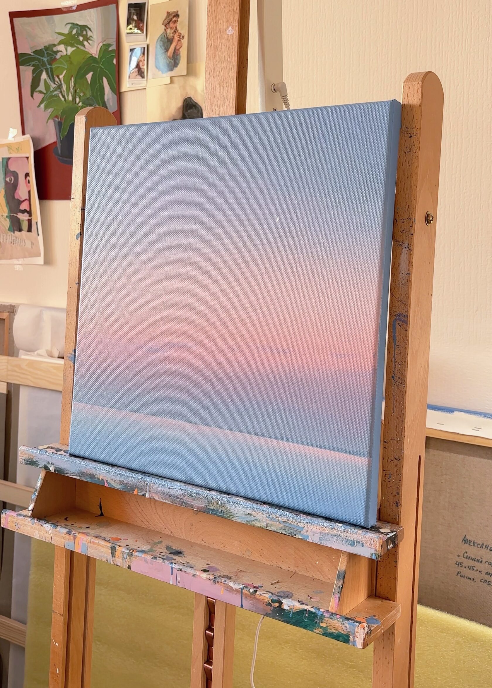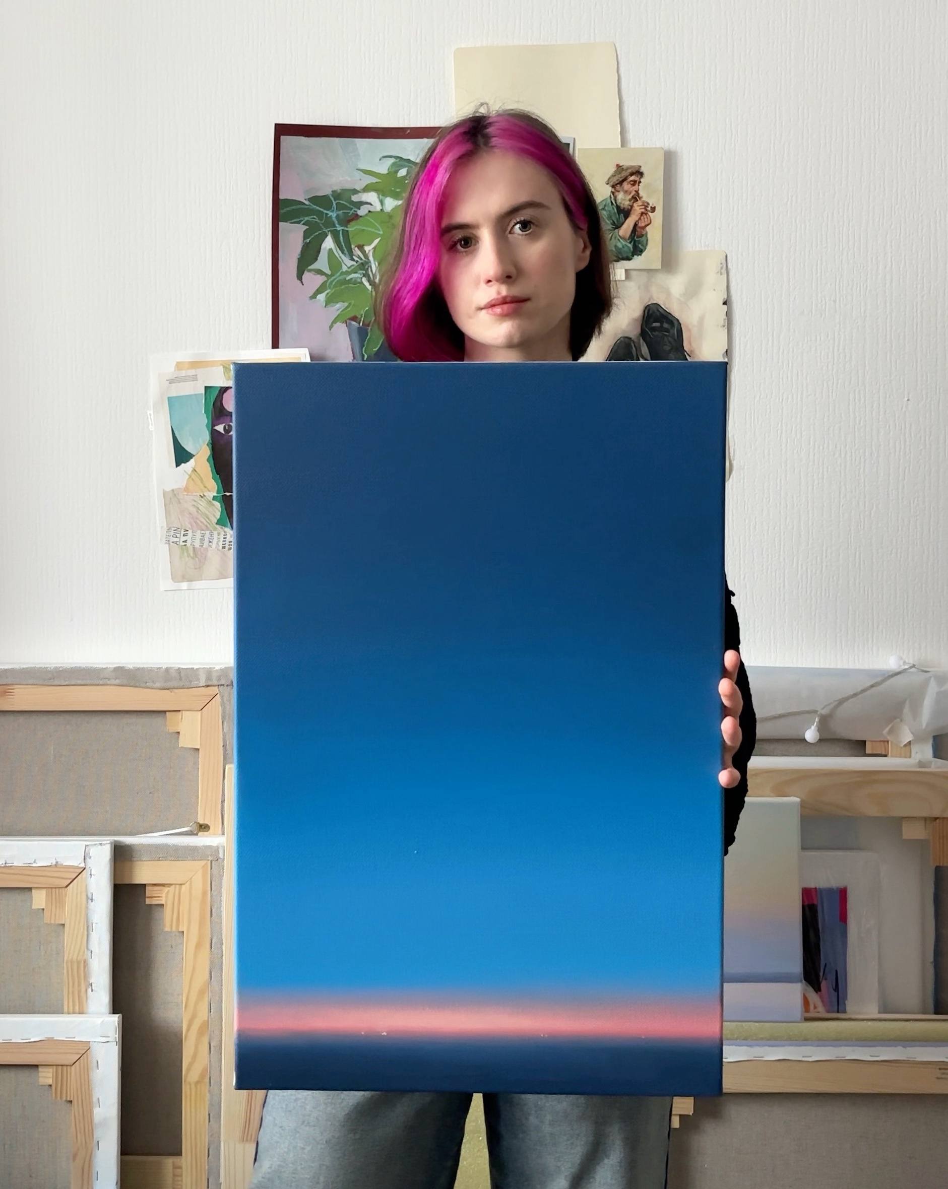 Данная работа является частью серии "Свет", в которой я создаю минималистичные пейзажи на грани с абстракцией, делая акцент на взаимодействии цвета и света. Пейзаж для меня это не конкретное место, а метафора "паузы", где каждый может погрузиться в себя и свои воспоминания.