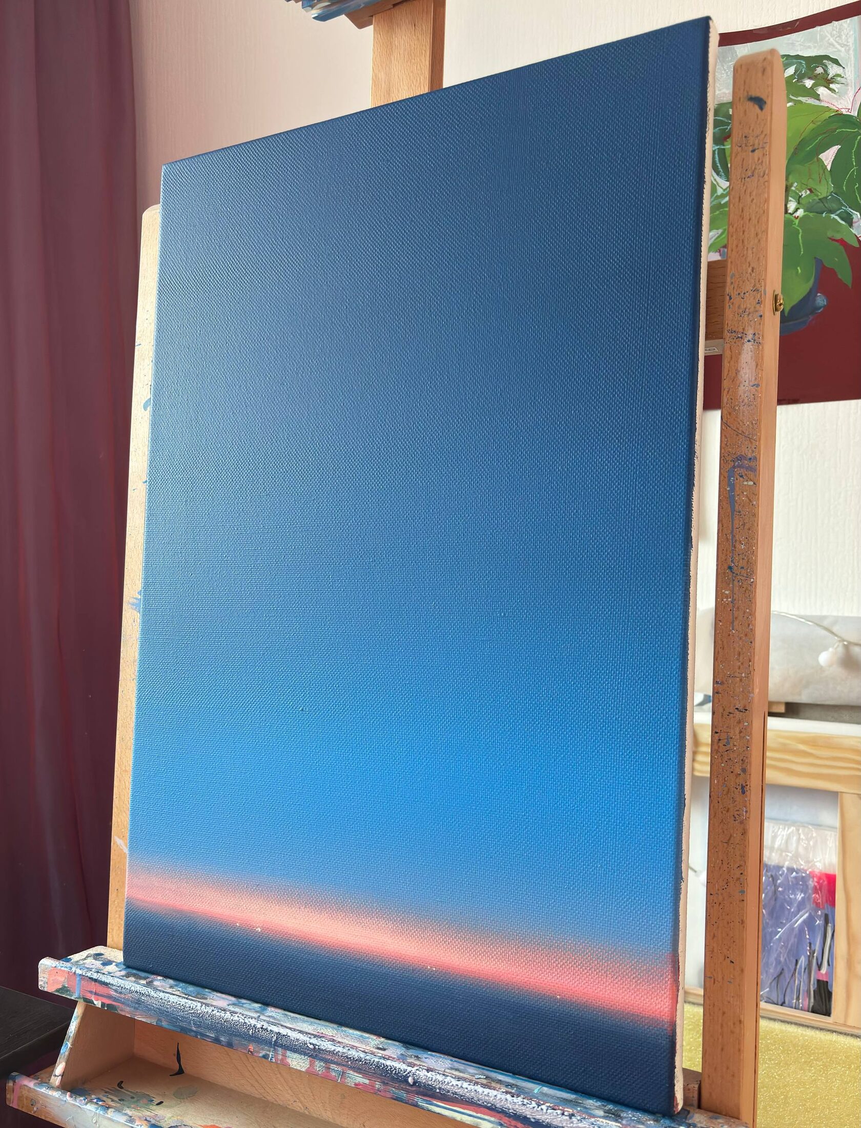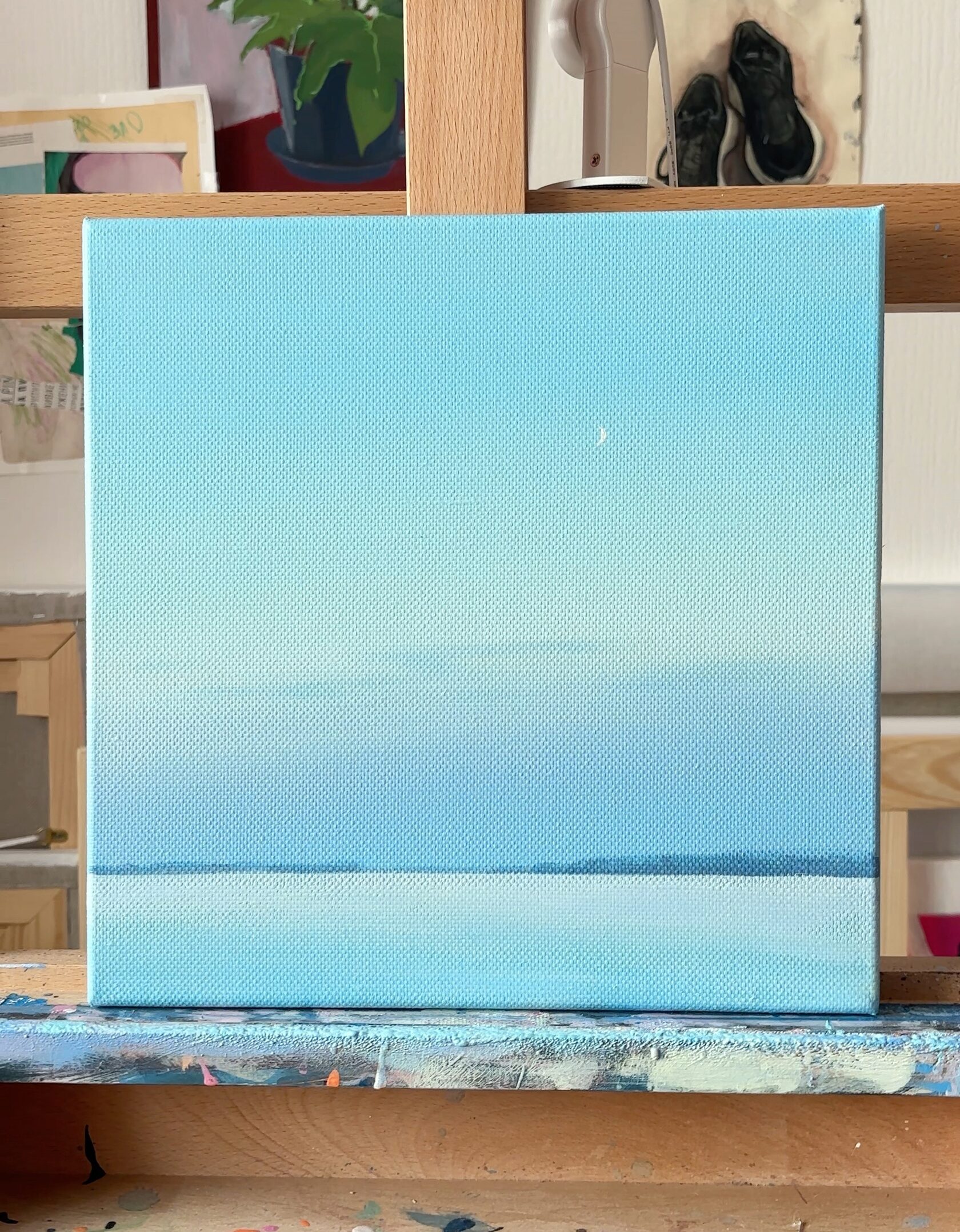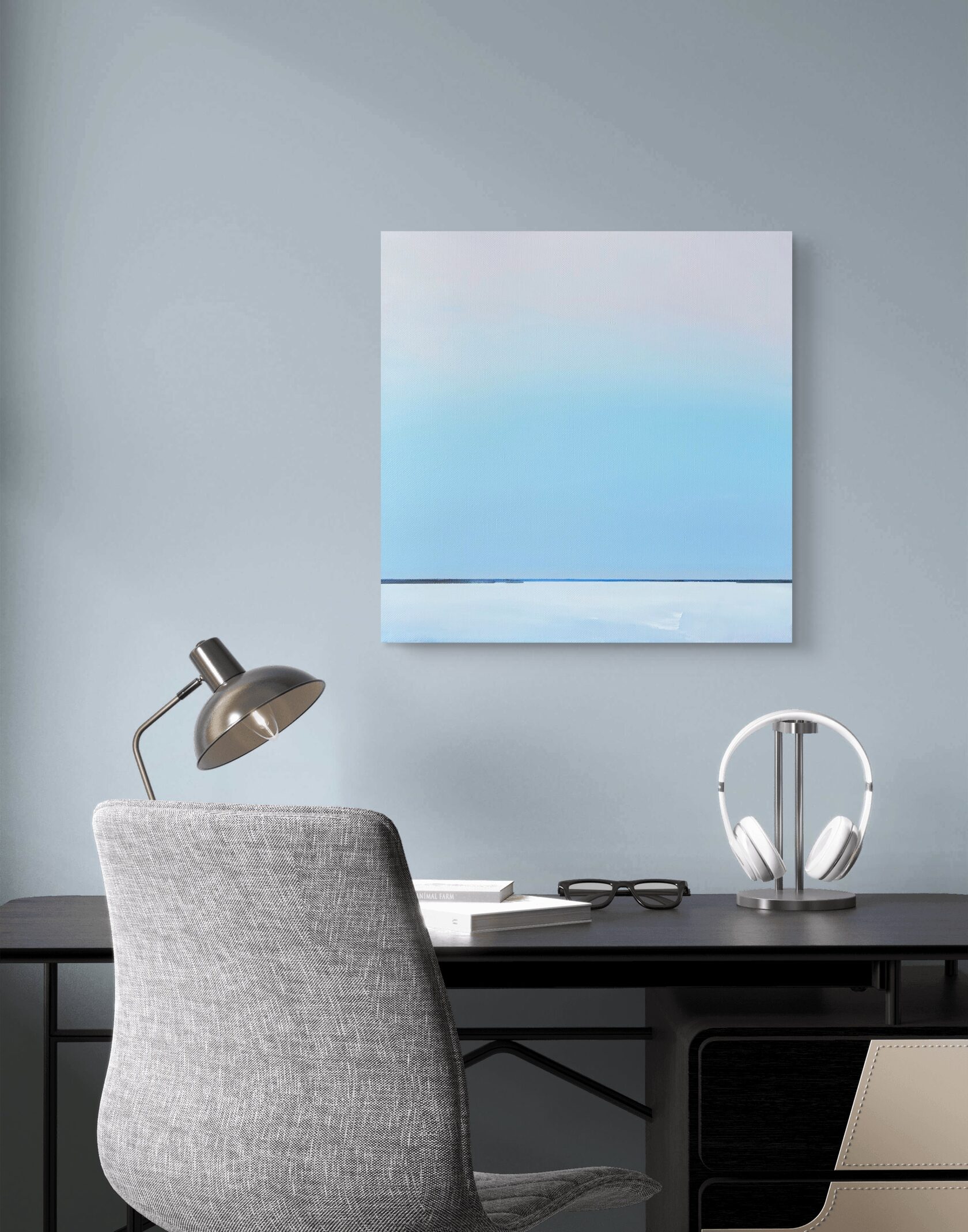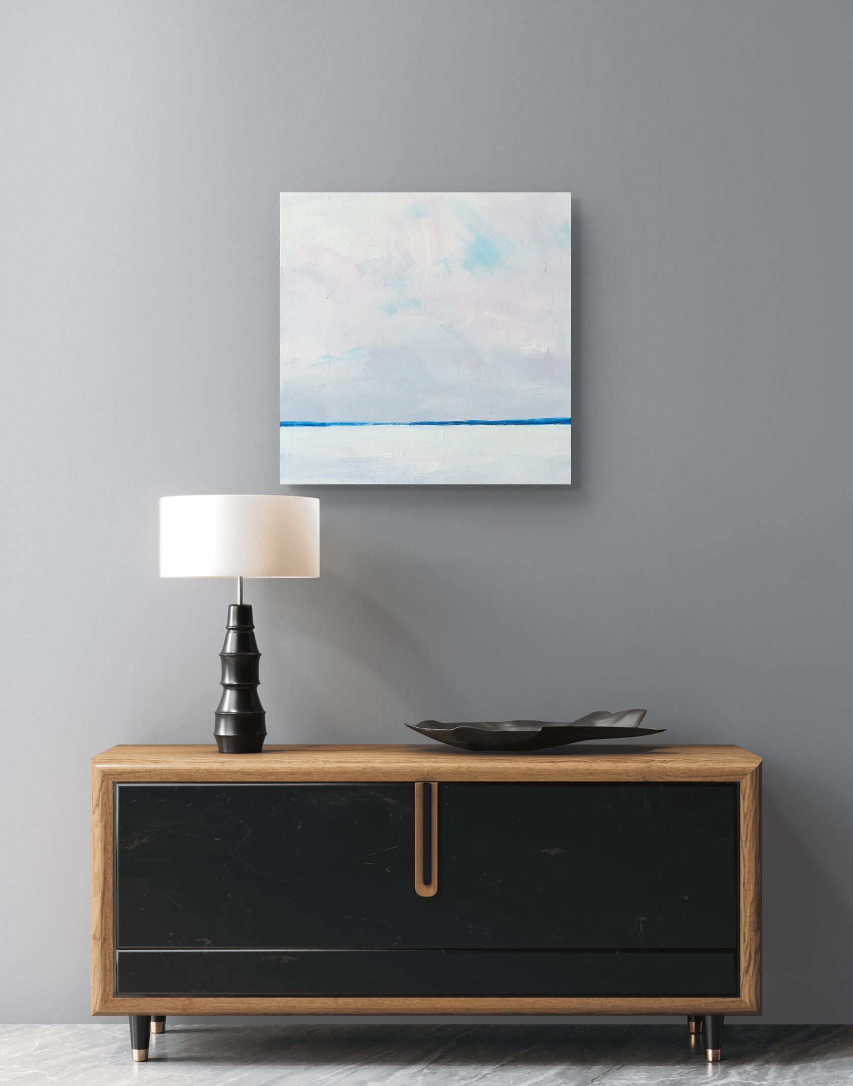 Данная работа является частью серии "Горизонты", в которой я создаю минималистичные пейзажи на грани с абстракцией. Пейзаж для меня это не конкретное место, а метафора "паузы".