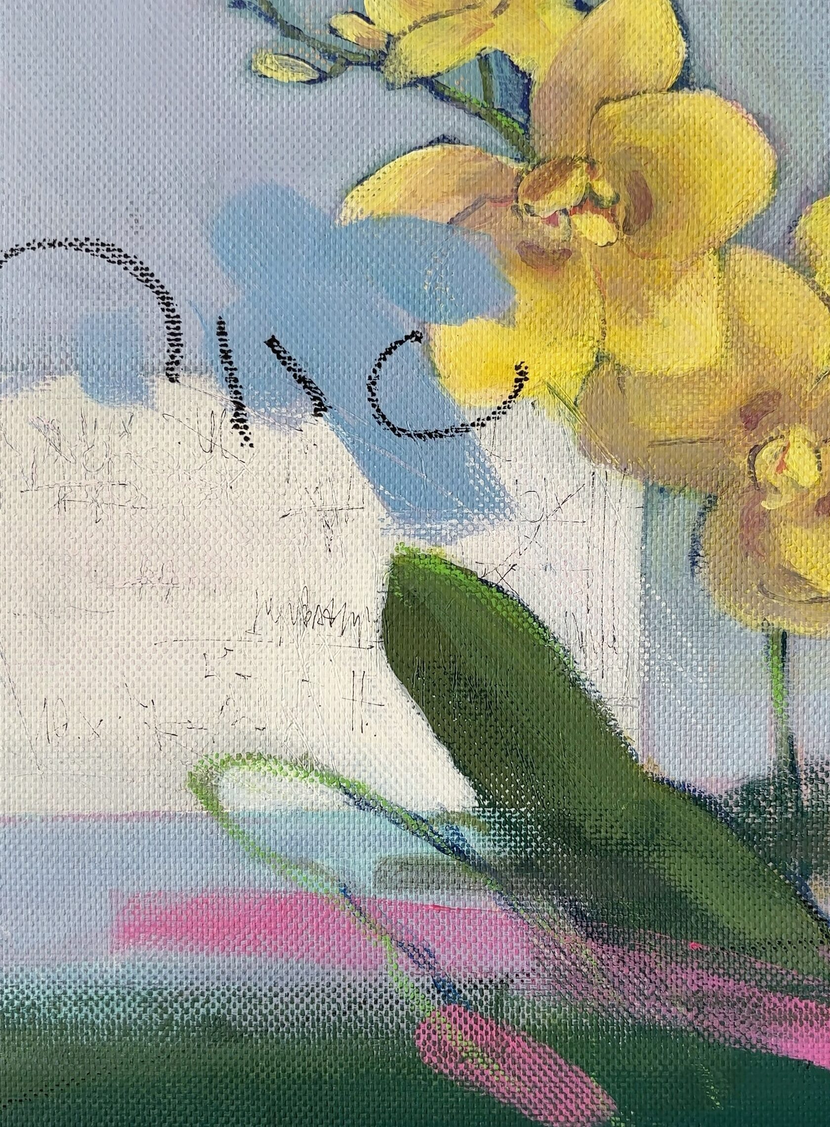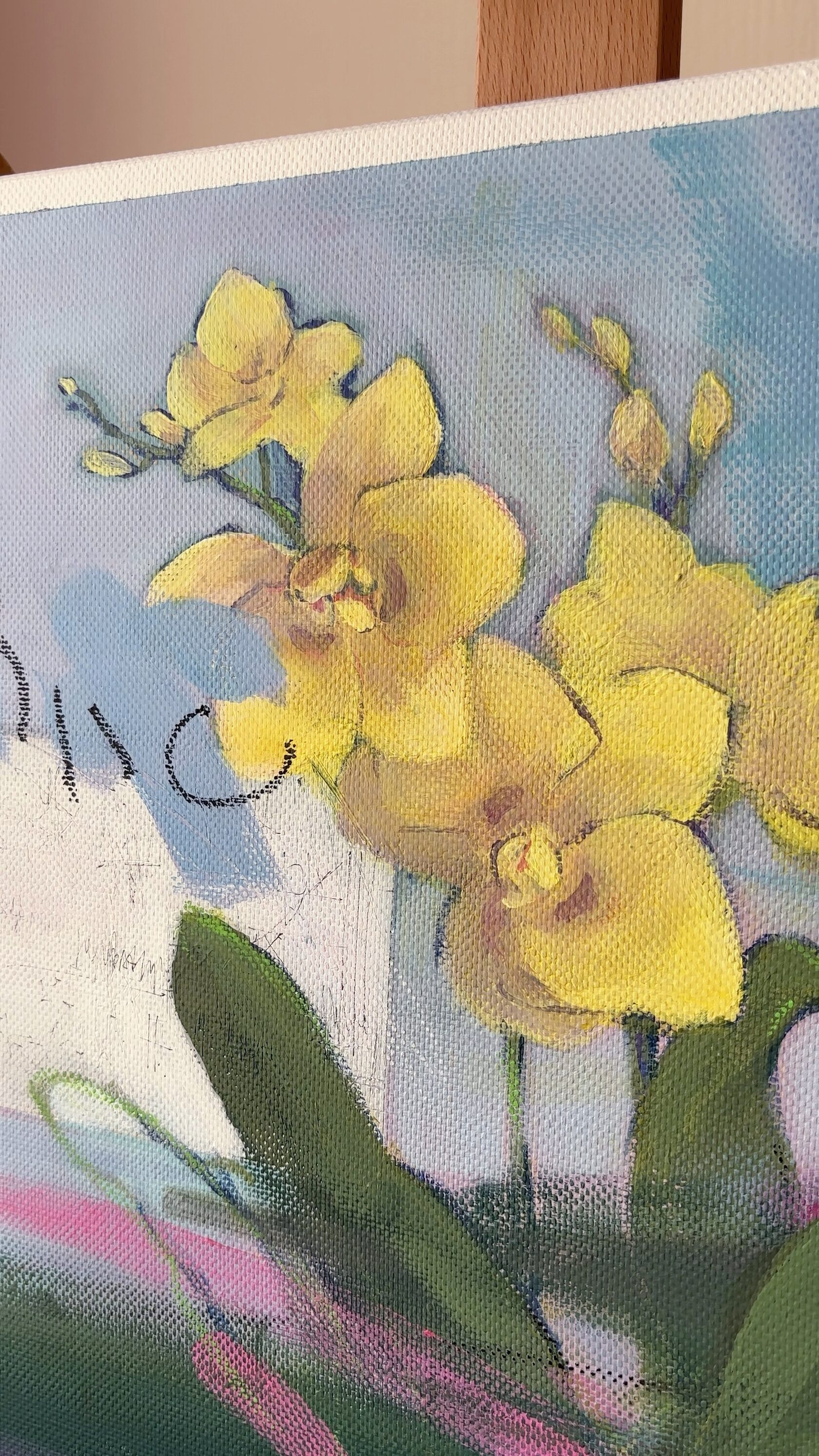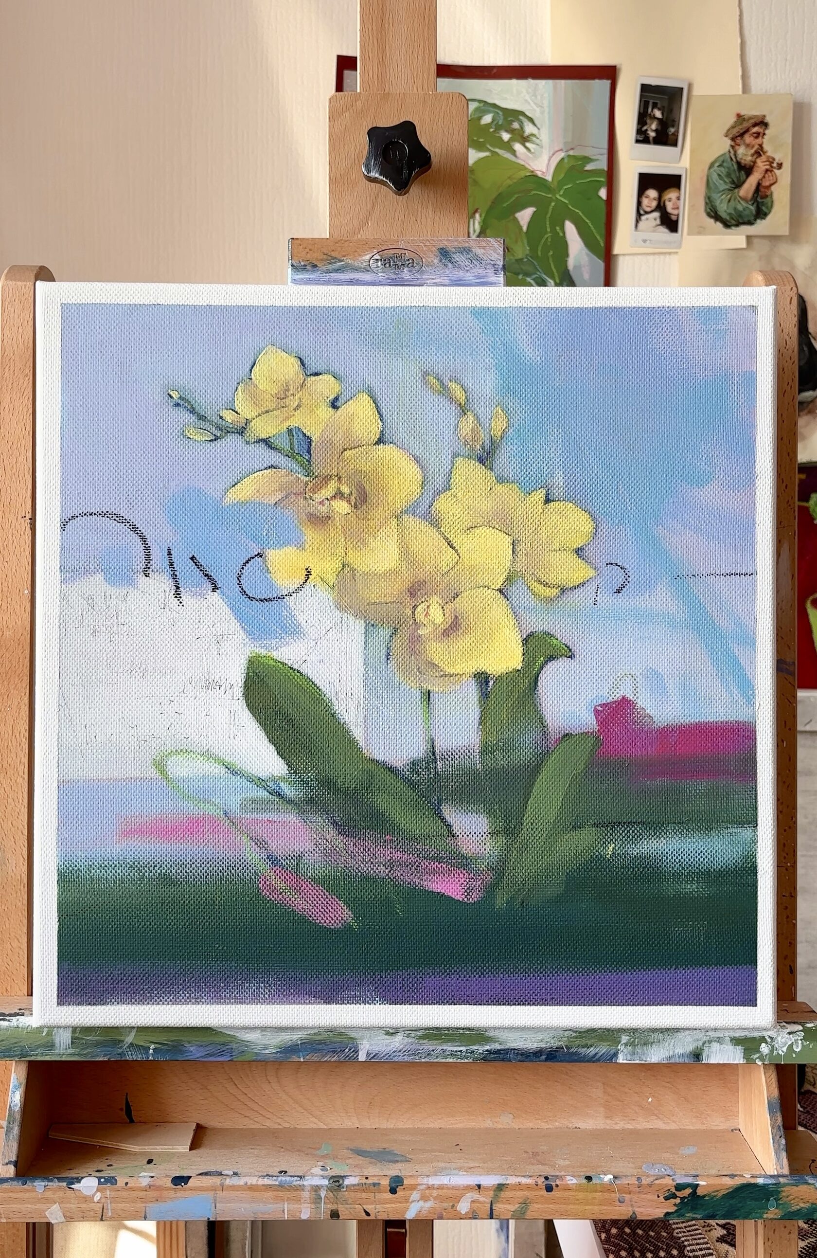 Эта работа посвящена орхидее — символу женственности, хрупкой силы и внутренней стойкости. В её ярких жёлтых лепестках соединяются уязвимость и уверенность, нежность и энергия, как в образе современной женщины. Картина становится отражением состояния, где красота — это не только внешняя форма, но и глубина переживаний, скрытая за ней.