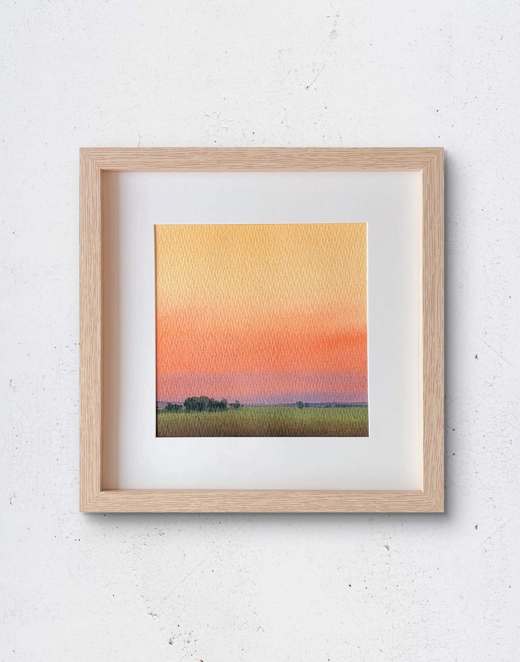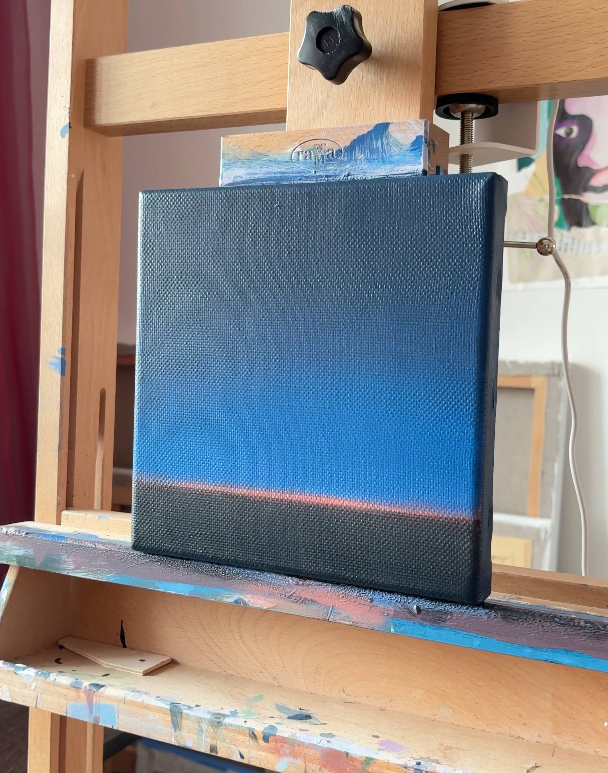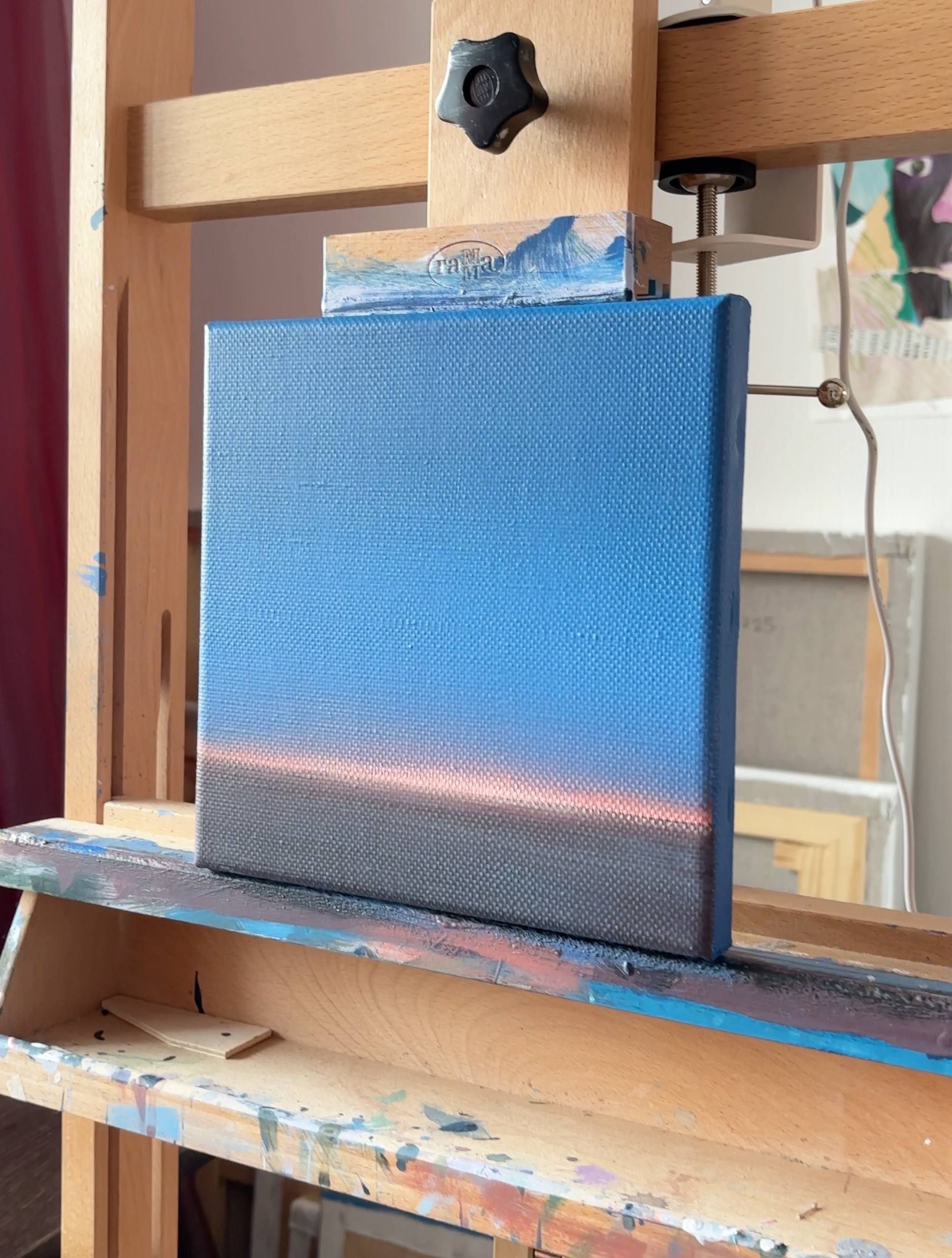 Диптих из двух миниатюрных картин является частью серии «Горизонты», пейзажей на стыке абстракции и минимализма. Работа «Просвет» строится на контрасте холодных тёмных синих и тёплого кораллового горизонта. Плавные градиенты и тонкая полоска света создают ощущение покоя и внутреннего просветления, где свет становится символом надежды.