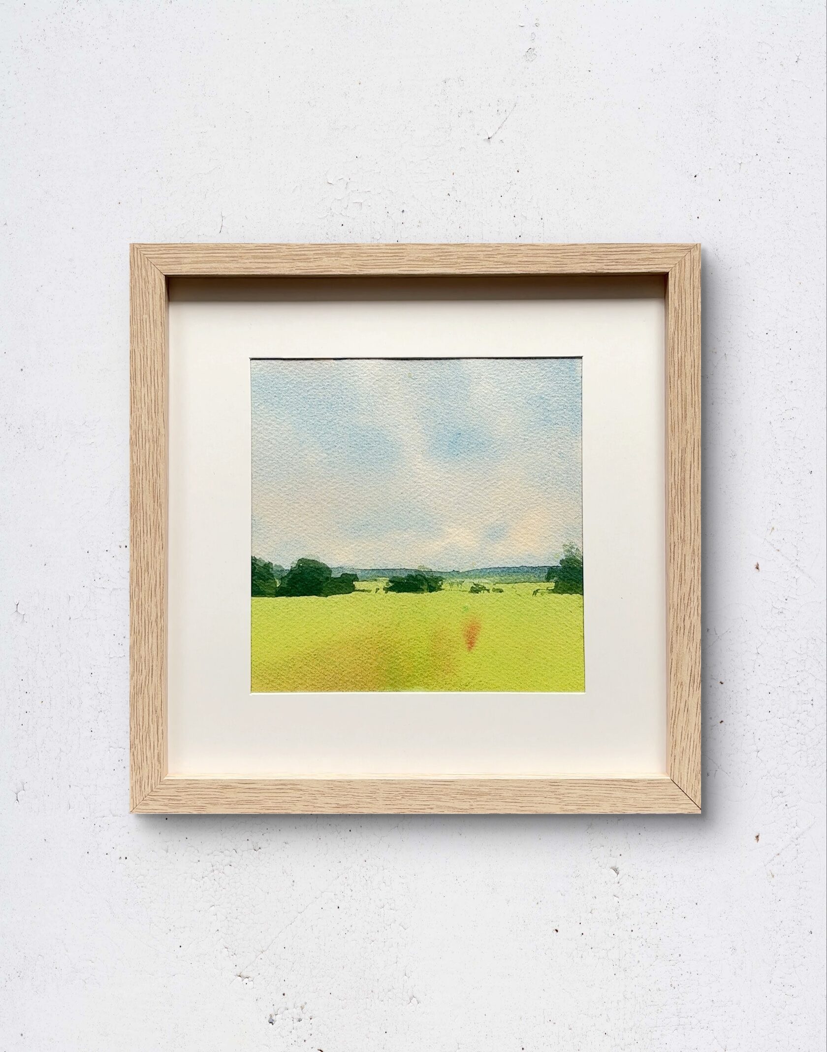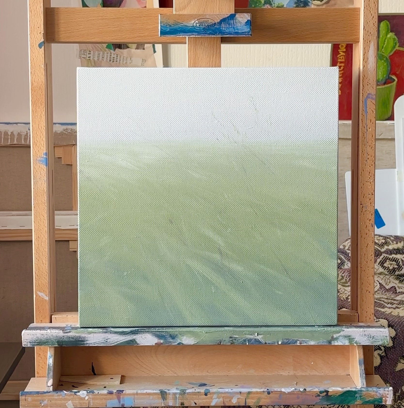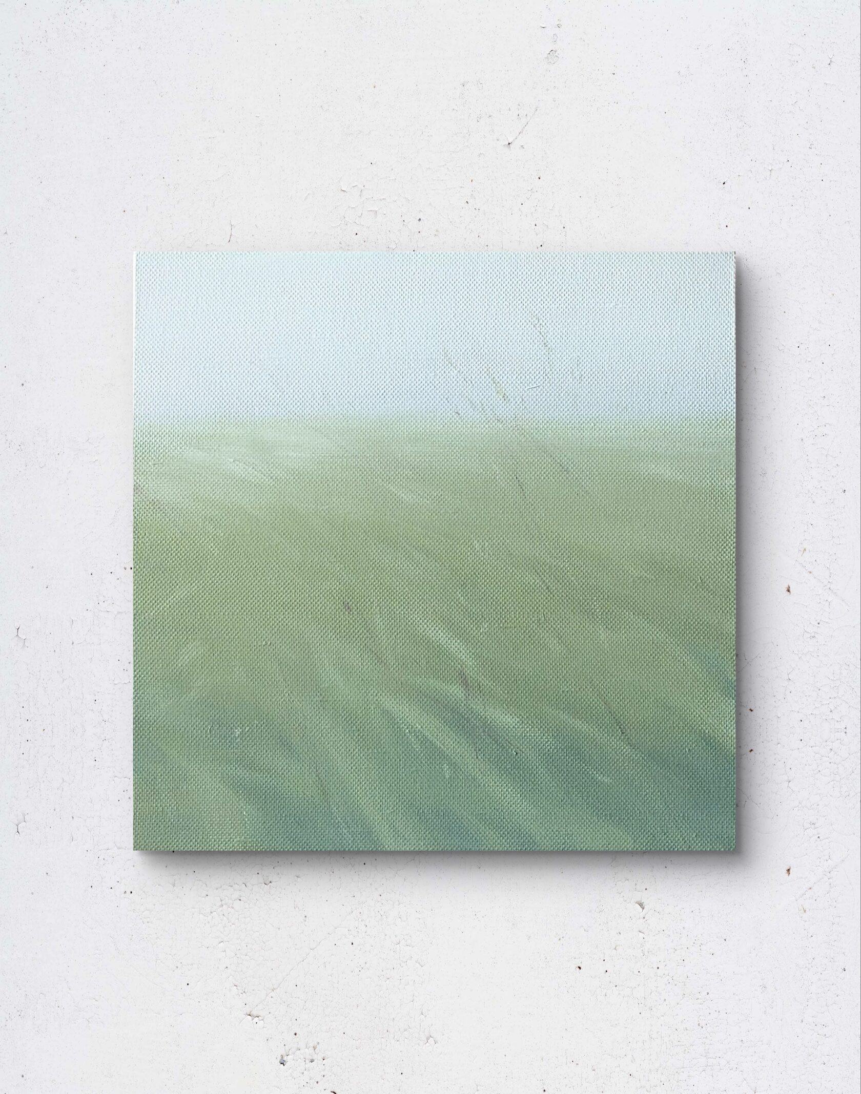 В этой работе всё построено на ощущении тишины и растворённости. Мгновение, когда мир будто скрыт за лёгкой вуалью, трава сливается с воздухом, границы становятся мягкими, и остаётся только дыхание пейзажа.